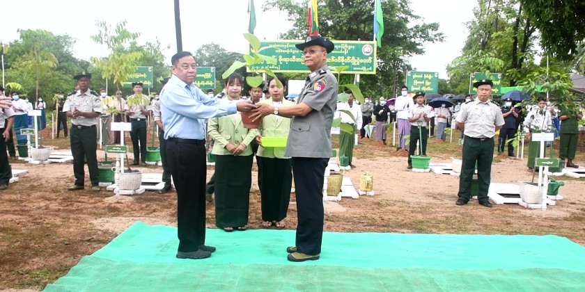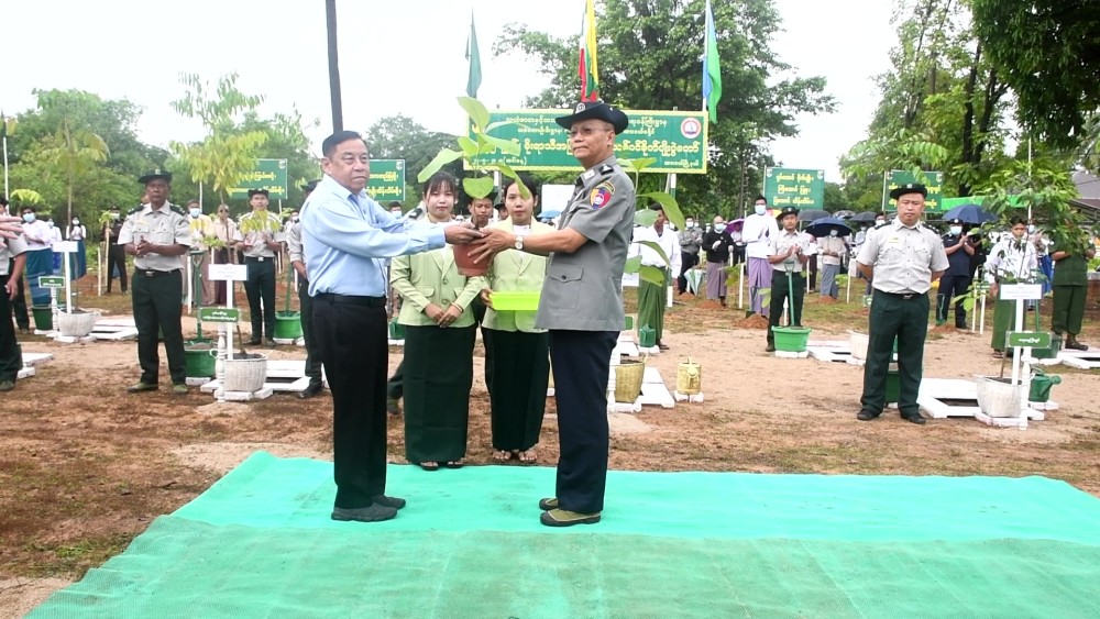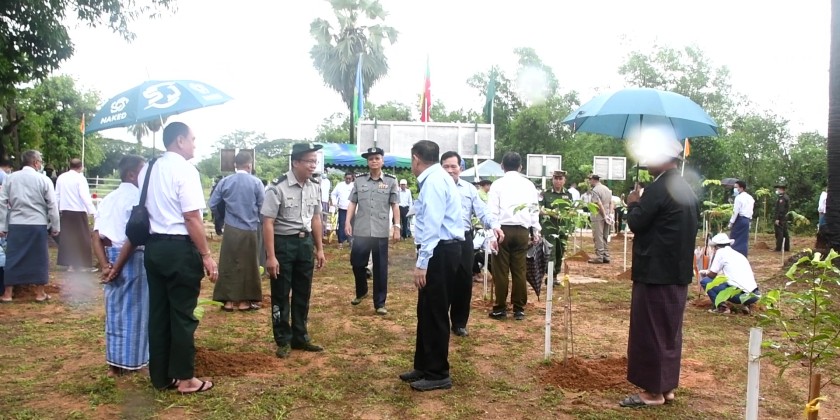 The ceremony was officiated by the Region Chief Minister U Myat Ko, and Deputy Commander of the Coastal Region Command, Brigadier General Aung Myo Tun, who handed out saplings to the attendees.