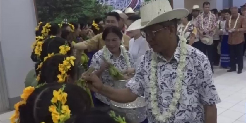 Pre-celebration of Thingyan Water Festival took place the Ministry of Transports and Communication on Friday. Deputy Prime Minister and Union Minister Admiral Tin Aung San and wife, together with the Deputy Ministers and officials and their wives, enjoyed the performances of Thingyan songs and dances.