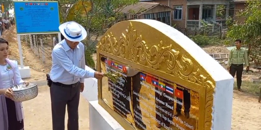 And then, Chief Minister and officials sprinkled scented water onto the signboard of new rural product transport road, took the group photo and inspected the new road.