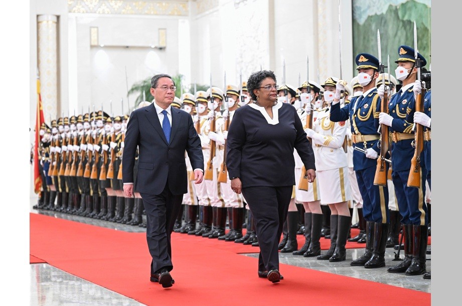 During talks with Prime Minister of Barbados Mia Amor Mottley, Li said Beijing is ready to build the China-Barbados relationship into a model of unity, solidarity and win-win cooperation among developing countries. He said China is willing to work with Barbados on the high-quality building of the Belt and Road Initiative, support the synergy between the Chinese-proposed Global Development Initiative (GDI) and the Economic Recovery and Transformation Plan of Barbados, and enhance exchanges and cooperation in trade and other fields.