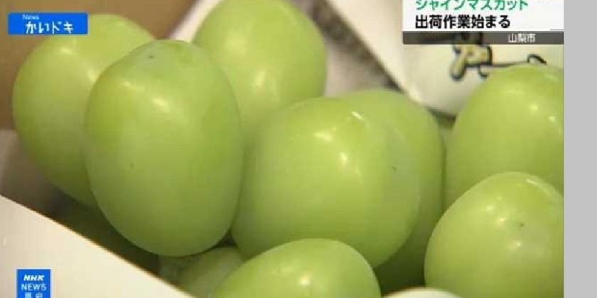 Farmers in central Japan have begun harvesting and shipping premium grapes known as Shine Muscat. Deliveries of outdoor-grown Shine Muscat began on Friday at an agricultural cooperative in Yamanashi City.