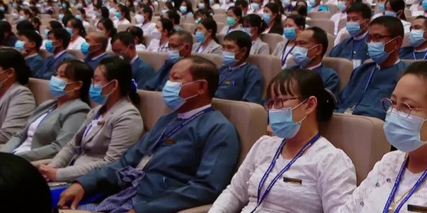 In the afternoon, the event continued at the office of the Anti-Corruption Commission, where Commission Chairman U Sit Aye and members, officers, and staff took part in the voting process practically. Officers and staff from Yangon, Mandalay, Taunggyi, and Mawlamyaing branches also joined the event via video conferencing.