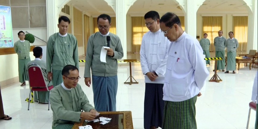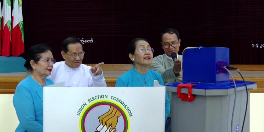 A demonstration of the Myanmar Electronic Voting Machine (MEVM) took place at the Myanmar Women’s Affairs Federation on Thursday.