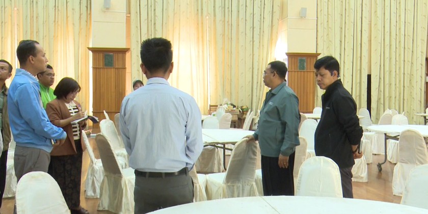 The Deputy Minister viewed the guesthouses, hostels, dining halls, kitchens, food storage areas, and venues for the welcome ceremony at the Nay Pyi Taw Sipin guesthouse. He also reviewed renovation works, accommodation arrangements, food service plans, water and electricity supply, and overall readiness.