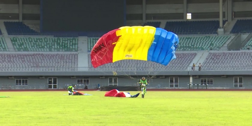 They also observed parachuting practice for the opening ceremony and urged relevant officials to complete their tasks on schedule to guarantee an outstanding celebration of both events.