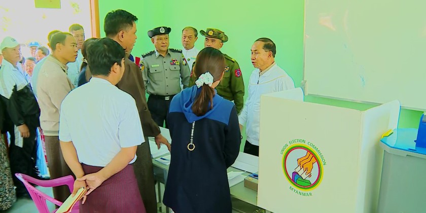 The also inspected the preparations at the No.1 and 3 election booths installed in the school compound as well as the No.1 and 2 election booths installed at Basic Education Middle School (Branch) in Oh Bo Taung  Ward, and coordinated necessities with the service personnel assigned at the booths.