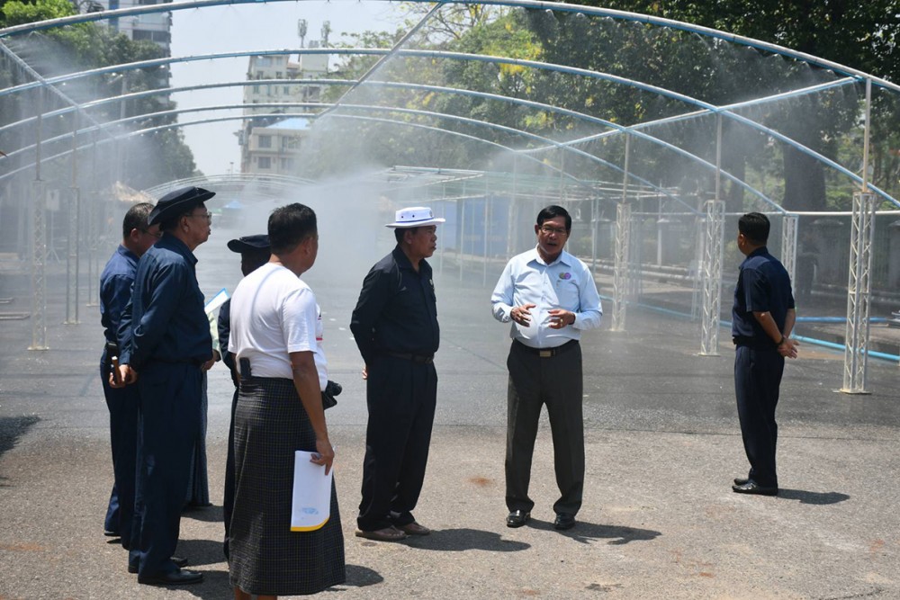 The Walking Thingyan will be held along the Maha Bandhula Park Street between Maha Bandhula and Merchant Roads. He instructed officials to provide arrangements for the public to enjoy the Thingyan Water Festival peacefully. He also instructed for durability of the pandals, security measures and worksite safety.