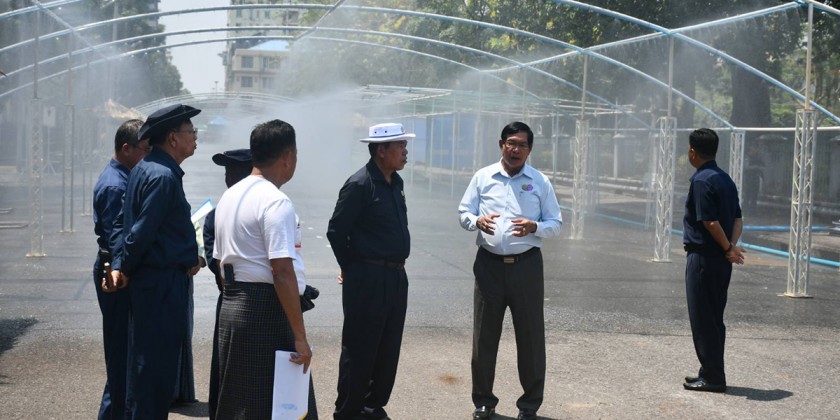 The preparation measures are in full swing for celebrating the Yangon Region Thingyan water festival in line with the traditional customs and culture. On April 8th, Chief Minister U Soe Thein and regional ministers inspected the progress of preparation measures at Yangon Mayor Maha Thingyan Pandal and Walking Thingyan Pandal.