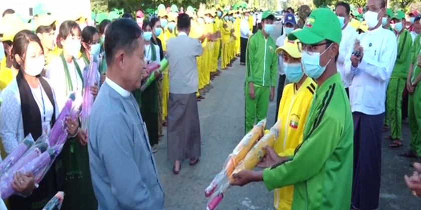 Also, he visited the interrogation and accommodation camp [YwaTaw] to greet students and the union ministers and many other officials presented Pathein umbrellas to them as memorable gift. There, the Vice Senior General also inspected the accomodation and mess room and gave necessary instructions.