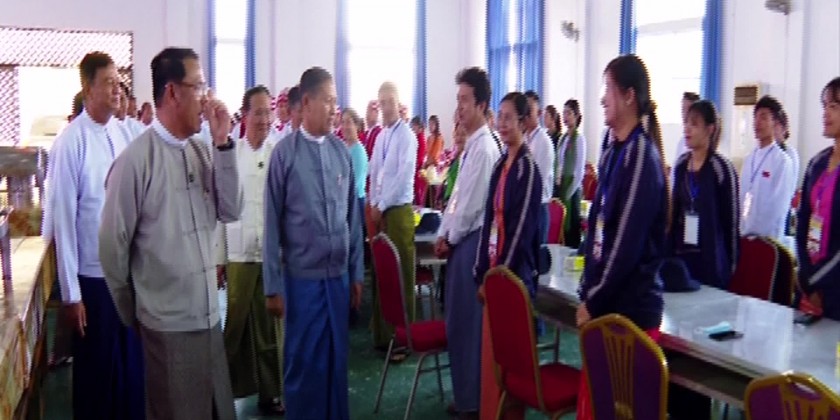 First, at the Gold Medal Hall in Nay Pyi Taw, the Vice Senior General greeted ethnic traditional cultural groups. And, union ministers and many other officials presented Pathein umbrellas to the groups as memorable gift. The Vice Senior General also inspected the accomodation and gave necessary instructions.
