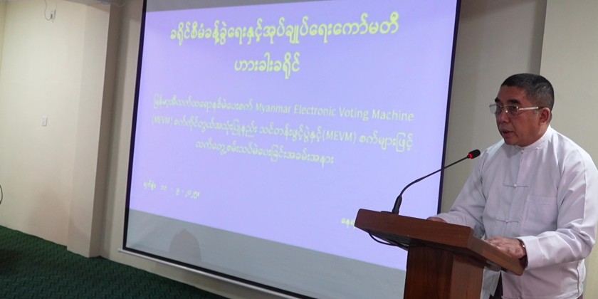 A training session on the use of Myanmar Electronic Voting Machine (MEVM) and a trial voting demonstration was held in Hakha District Office on September 11.