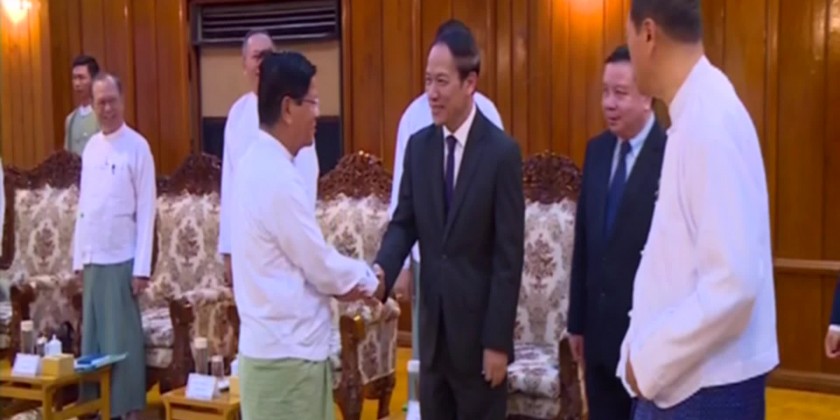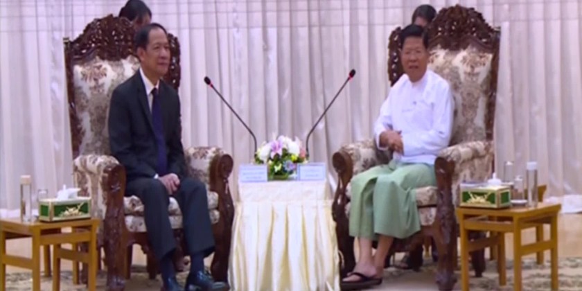 Chairman of the Union Election Commission (UEC) U Thein Soe met with the ASEAN Special Envoy to Myanmar Mr. AlounkeoKittikhoun at Yangon Region Government Office on Friday.