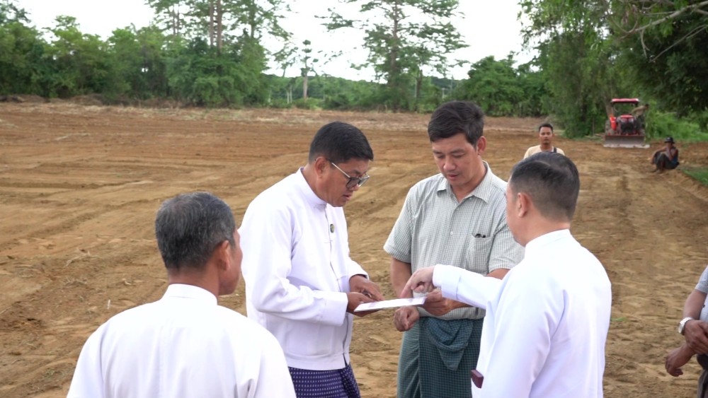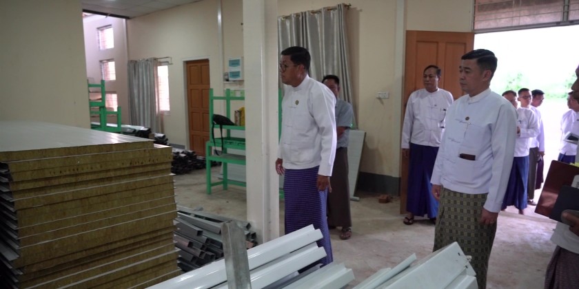 Union Minister for Hotels and Tourism U Kyaw Soe Win accompanied by Deputy Minister and officials, on May 21, inspected the ongoing preparations for the installation of container houses at the office compound of the Nay Pyi Taw Hotel Entrepreneurs Association located in Dekkhinathiri Township, Nay Pyi Taw.