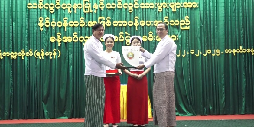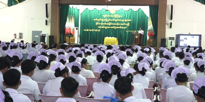On behalf of the new appointees, one newly appointed nurse expressed words of gratitude. The Yangon Region Chief Minister then presented an honorary donation of 35 million kyats to six nursing training schools and one midwifery training school in Yangon, which was received by the Union Minister.