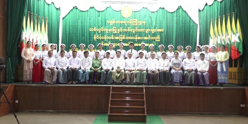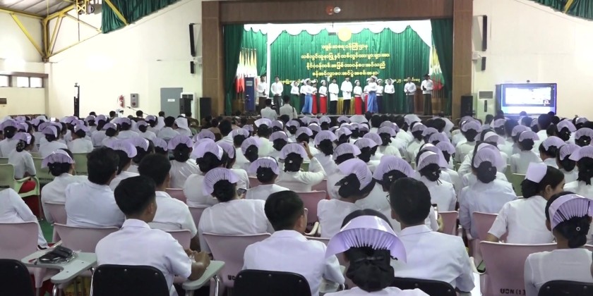 The ceremony took place in a hybrid format at the Auditorium of the University of Nursing (Yangon) on December 22. At the event, the Union Minister for Health, Professor Dr. Thet Khaing Win, delivered the opening address.