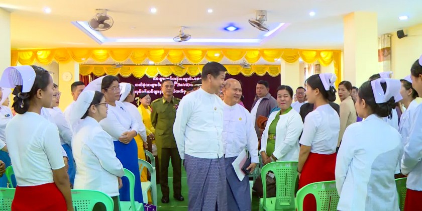 Then, the principal of Mid-wifery Training School (Mandalay) clarified regarding with the training school, one trainee expressed words of thanks, documentary group photo was taken and the Chief Minister and party cordially greeted the trainees and the training instructors.