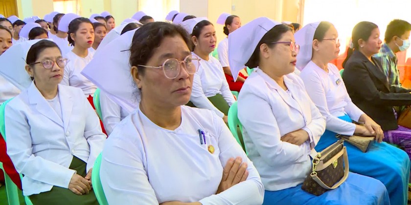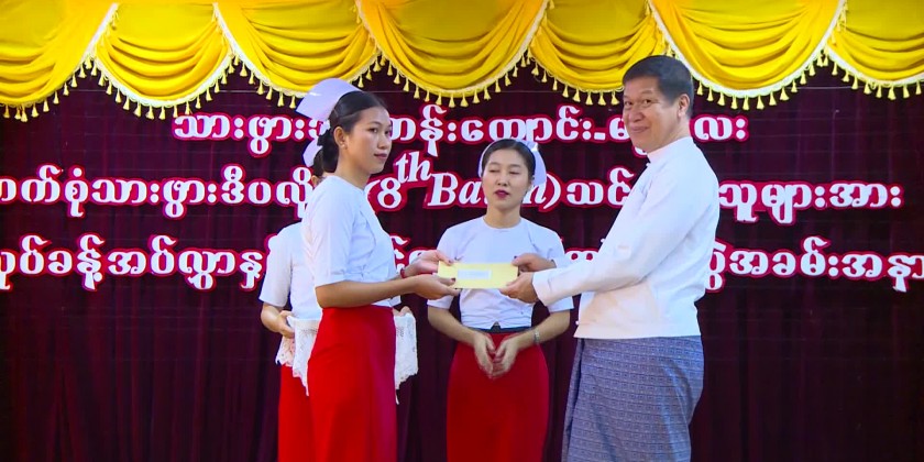 The ceremony of presenting certificate of employment to the trainees completed all-round mid-wifery two years training diploma of Mid-wifery Training School (Mandalay) of the Department of Human Resource for Health under the Ministry of Health was held at the training school in Chan Aye Tharzan Township in the morning on 19th December.