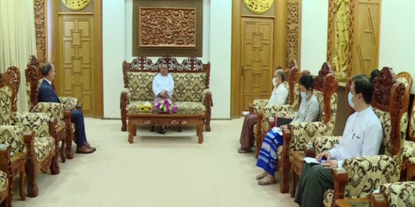 The representative of the United Nations Children’s Fund (UNICEF) Myanmar Mr Marcoluigi Corsi paid a courtesy call and presented his Credentials to U Wunna Maung Lwin, Union Minister for Foreign Affairs, at the Ministry of Foreign Affairs in Nay Pyi Taw at 11 am on 16 June 2022. Also present at the meeting were the senior officials of the Ministry of Foreign Affairs.