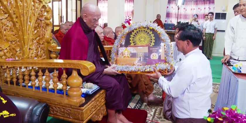 Next, Yangon Region Chief Minister U Soe Thein supplicated religious affairs and offered the offertories and cash donation to the State Sangha Mahanayaka Committee Chairman Sayadawgyi.