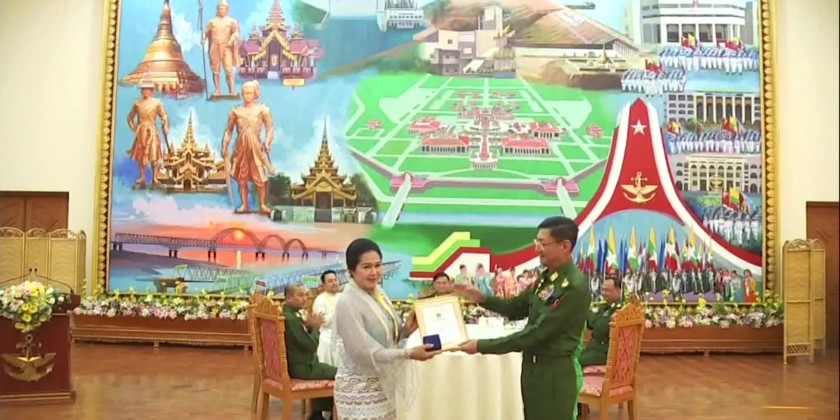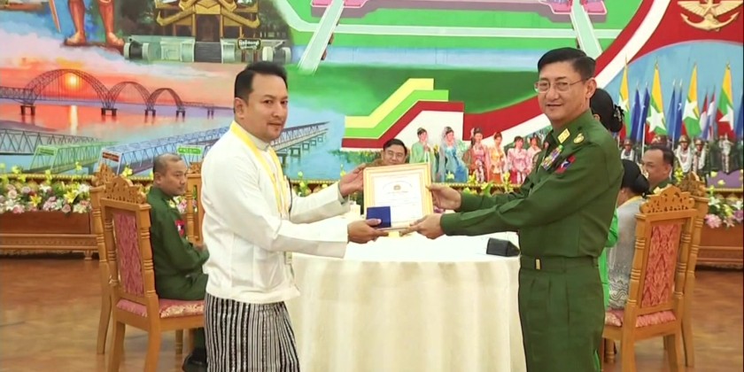A ceremony of presenting honorary awards and certificates to the artistes who participated in the 80th Anniversary Armed Forces Day commemorative film, “Thitsar Myo Sat” as well as the musicians and literati who have received the commemorative military songs, poems and novel awards was held at the Bayintnaung Villa in Nay Pyi Taw on 26th March.