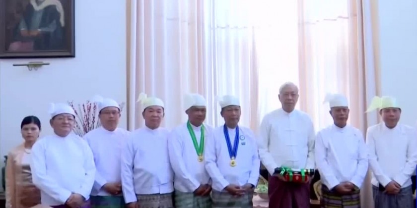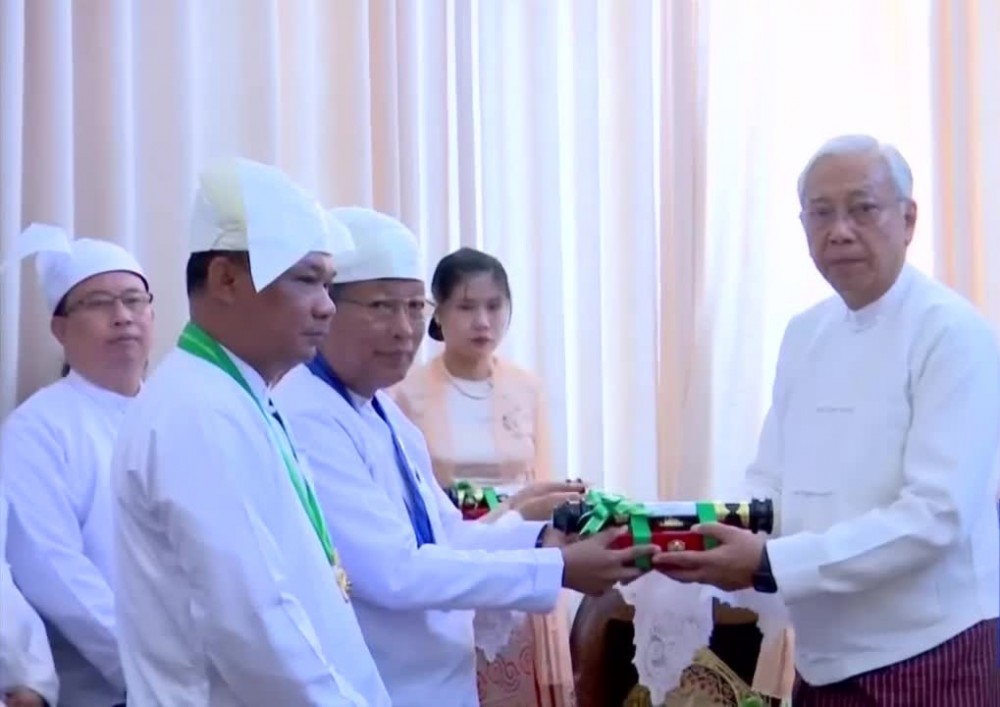 Chairman of Nay Pyi Taw Council Thiri Pyanchi U Tin Oo Lwin and Commander of Nay Pyi Taw Command Maj-Gen Zaya Kyawhtin Zaw Hein presented the Sithu titles to former President U Htin Kyaw, son of U Wun (Min Thu Wun/ writer) and son-in-law of the member of the State Council U Lwin (Mon State), on their behalf.