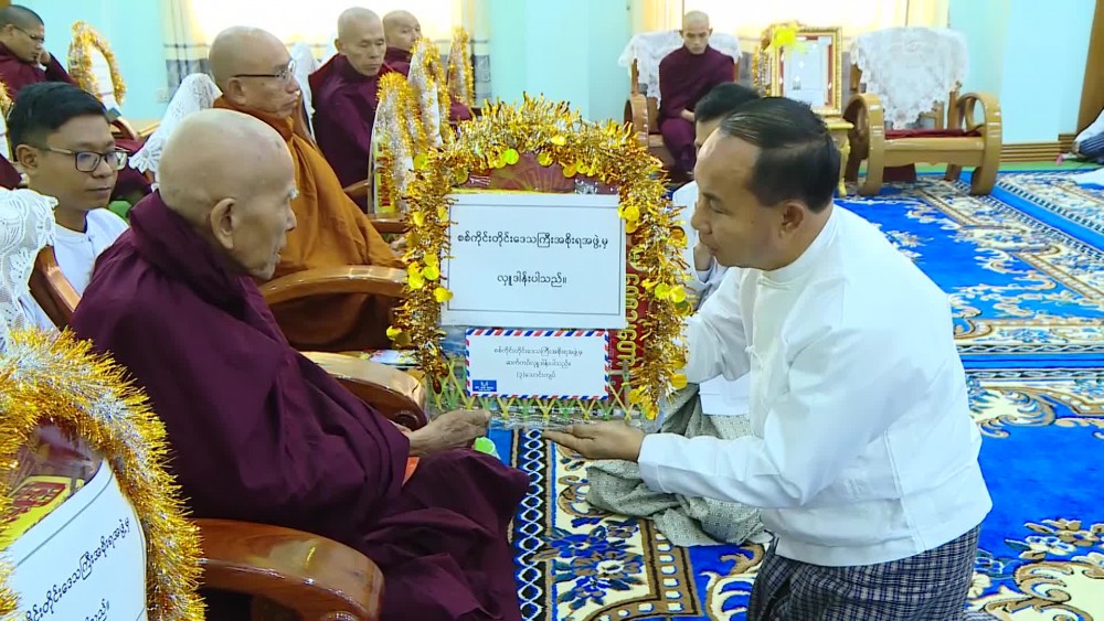 Then, the chief minister, members of region government and region level departmental officials presented the certificate and cash donation to the members of Sangha and nuns from Monywa, Chaung-U, Butalin and Ayadaw Townships.