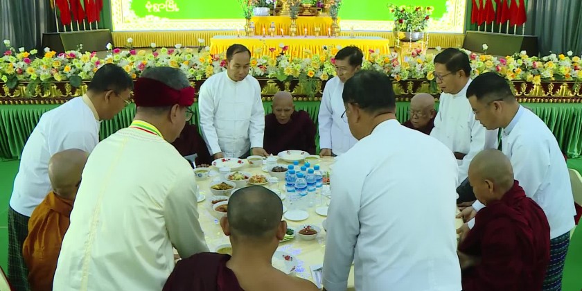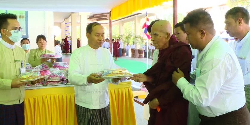 Afterward, the chief minister, members of region government and officials offered rice provisions and day meal to the members of Sangha.