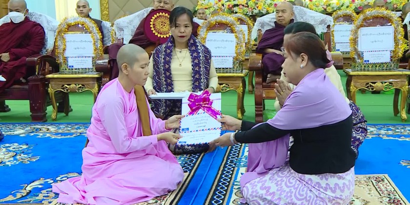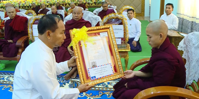 The ceremony of presenting certificate of passing religious examination was organized by the Sagaing Region Government at the Chindwin Hall of the region government office in the morning on April 4 with the presence of Chief Minister U Myat Kyaw, region chief justice, members of region government, region/district and township level departmental officials, township elders and invited guests.