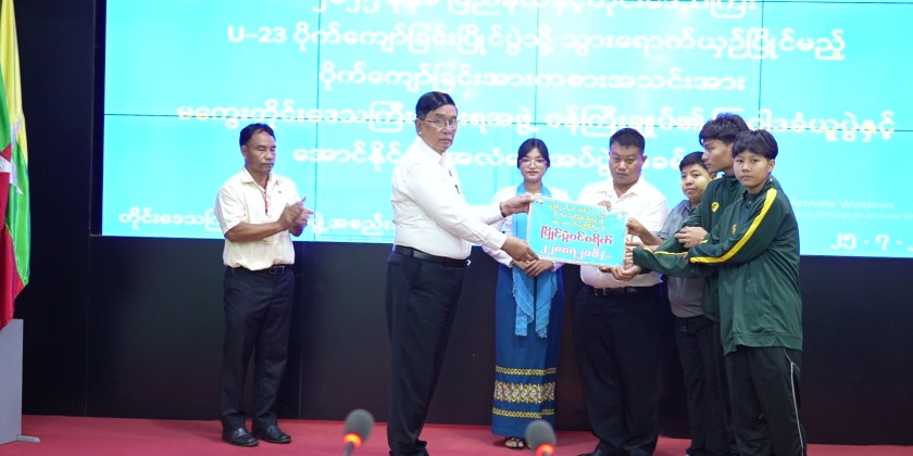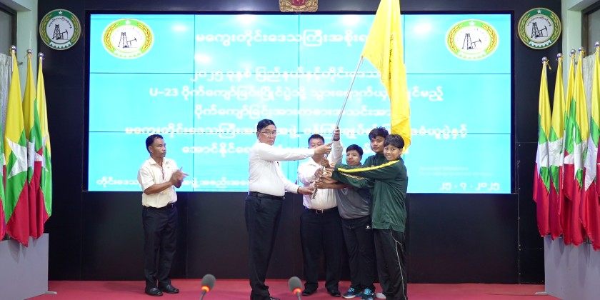 Following this, Director of the Department of Sports and Physical Education in the Region, U Than Aung, explained the current state of preparation for the Inter-Regions and States Sepak Takraw Competition. The Chief Minister then presented the team with the flag of victory and provided financial support totaling 1.45 million kyat.