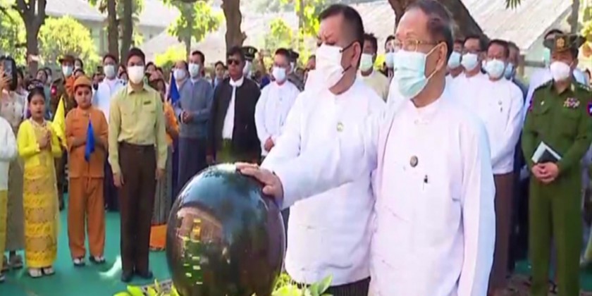The bronze plaque was installed at the historic Royal Thante School in AungMyayThazan Township, Mandalay region on Friday.