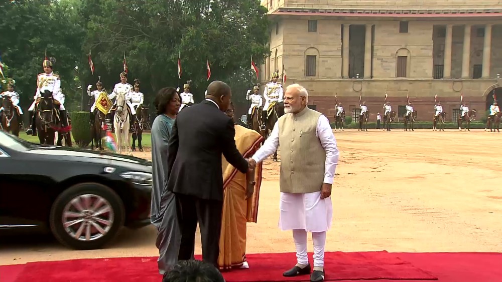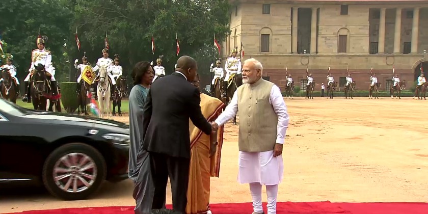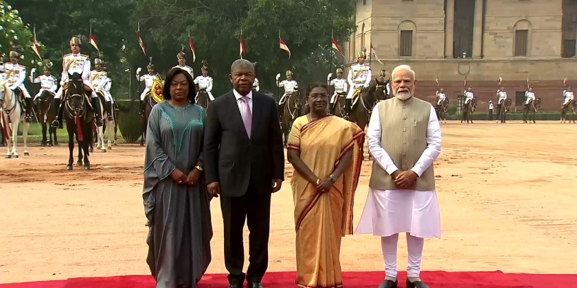 President of Angola, Joao Manuel Goncalves Lourenco received a ceremonial welcome at the forecourt of Rashtrapati Bhawan. India established formal diplomatic relations with Angola in 1985.