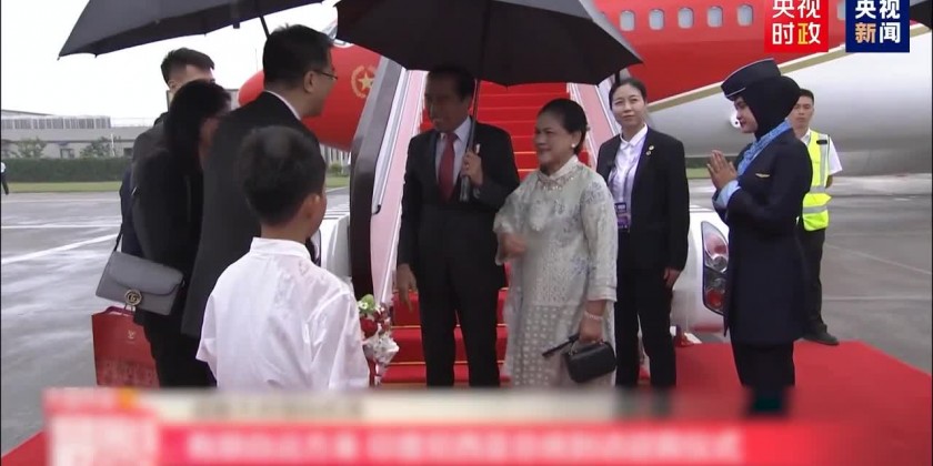 Indonesian President Joko Widodo and first lady Irianaarrived in Chengdu, southwest China's Sichuan Province, on Thursday. President Joko Widodo’s visit to China is in the invitation of Chinese President Xi Jinping and is to mark the 10-year Indonesia-China comprehensive strategic partnership.