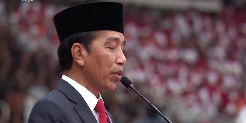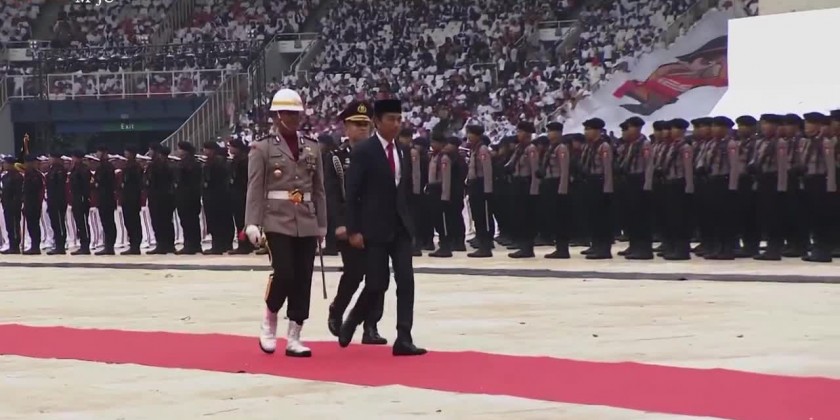 Indonesian President Joko Widodo presides over the 77th anniversary commemoration of the national police at the Bung Karno sports stadium on 1st July.