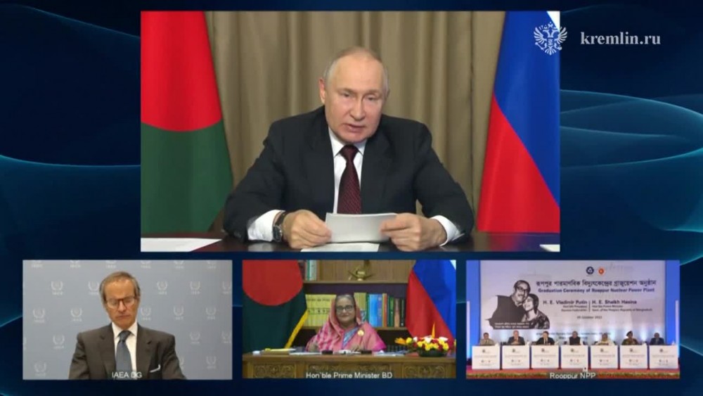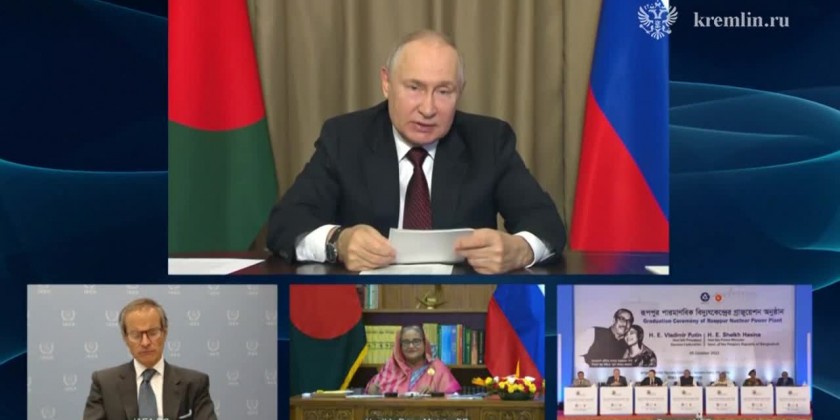 Russian President Vladimir Putin, together with BangladeshPrime Minister Sheikh Hasina took part via video link in a ceremony marking the delivery of Russian-made nuclear fuel to the first power unit of the Rooppur Nuclear Power Plant.