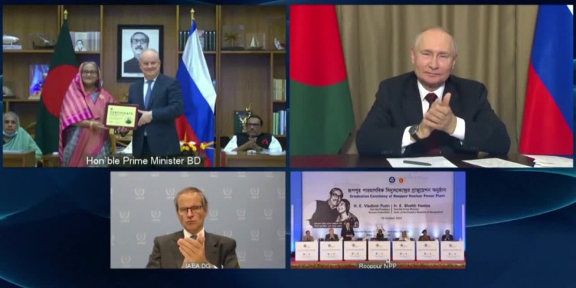 The ceremony was also attended by the Director General of the International Atomic Energy Agency (IAEA) Rafael Grossi. The Rooppur nuclear power plant with two VVER-1200 reactors is under construction 160 km from the capital of Bangladesh, Dhaka.
