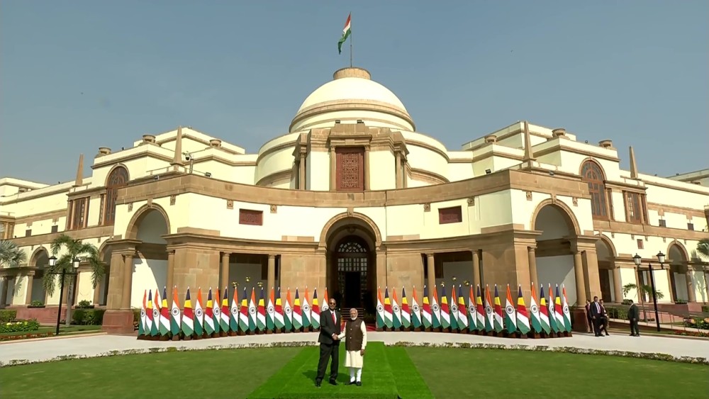 Seychelles President Dr. Patrick Herminie met Prime Minister Narendra Modi in the national capital on Monday as part of his six-day official visit to India. The two leaders met at Hyderabad House, where they exchanged greetings before engaging in comprehensive discussions.