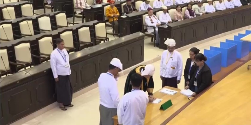 According to the agenda, the Speaker of the Amyotha Hluttaw announced the list of vice-presidential candidates. As there were two nominees, a secret ballot was conducted using voting papers to make the selection.