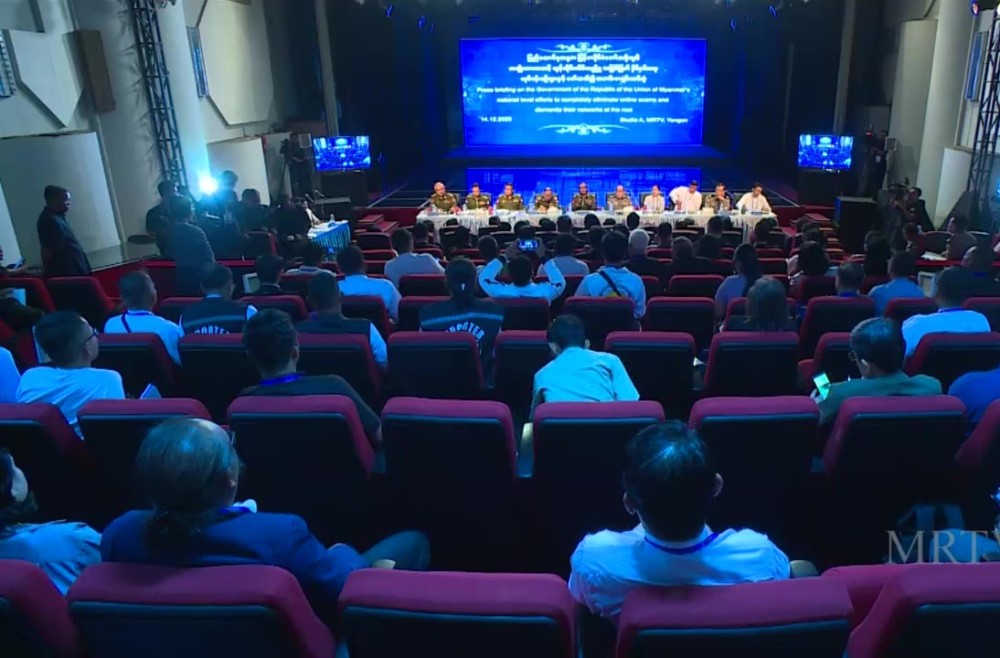 Press briefing on the Government's national level efforts on eradicating online scams took place in Yangon on Sunday. Leader of the Information Team of the National Defence and Security Council, Deputy Minister for Information Maj-Gen Zaw Min Tun led the press, together with concerned officials.