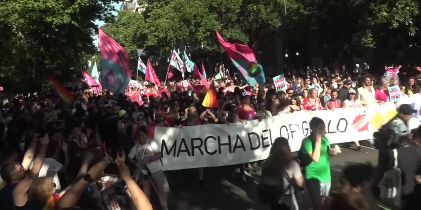 The crowds gathered before noon in Plaza de Mayo, the square facing the presidential palace, and marched 2 kilometres towards the Congress building. Argentina's legislation affecting LGTBQ is relatively advanced in the region.