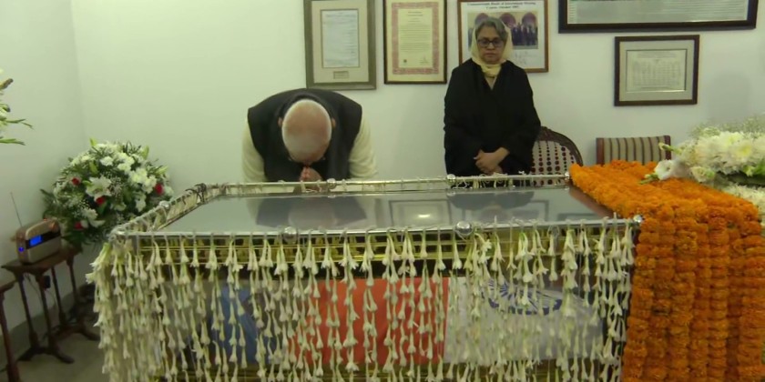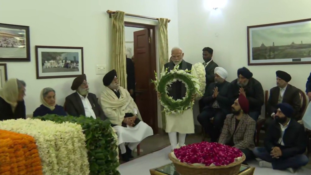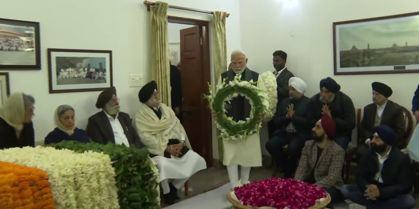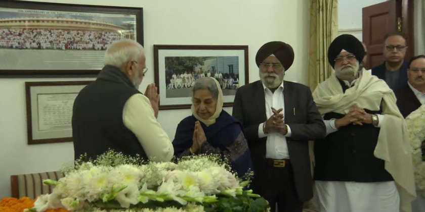 India's Prime Minister Narendra Modi paid tribute to the former Prime Minister Dr. Manmohan Singh at his residence in New Delhi on Friday.