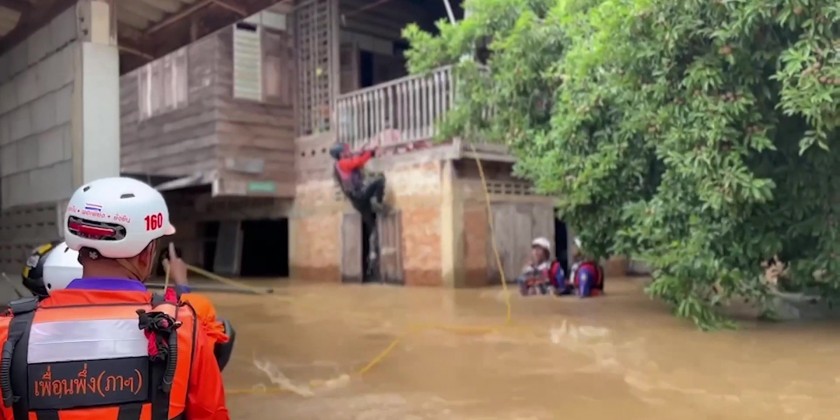 Thai Prime Minister Paetongtarn Shinawatra accompanied by key cabinet members on Friday visited flood-affected areas in Sukhothai province, meeting with flood victims and distributing relief supplies and preparing food for them.