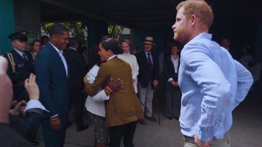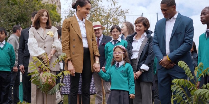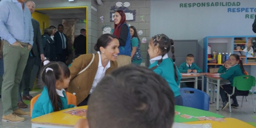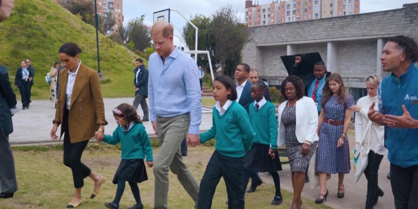 Prince Harry and Meghan visited a school in a southern neighborhood of Bogota, as they are touring Colombia for a series of events against discrimination and cyber harassment. The couple visited the school's museum on Colombia's memory, an exhibition space showcasing student artworks that focus on massacres across various regions of Colombia. Harry and Meghan will be in Colombia until August 18 and will visit Cartagena and Cali.