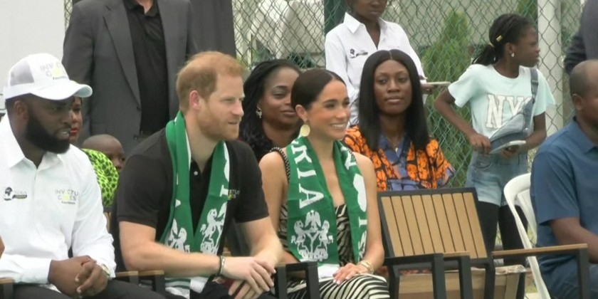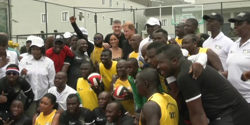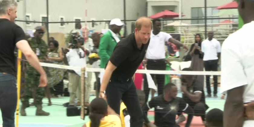Prince Harry joins a game of seated volleyball with army veterans during a tour in Nigeria to promote his Invictus Games. The Duke of Sussex arrived with his wife Meghan on Friday in the capital, Abuja, where they visited a school for an event on mental health for students in a trip that also saw the prince meet wounded Nigerian soldiers in the northwest.