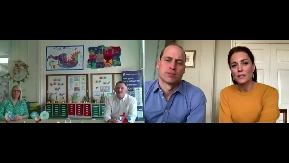 Britain's Prince William and wife Catherine, Duchess of Cambridge, on Wednesday paid a virtual visit to a British primary school, which was open to the children of frontline staff battling the coronavirus pandemic.