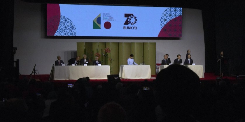 The completion ceremony was attended by Emperor Emeritus Akihito and Empress Emerita Michiko while they were Crown Prince and Princess. Princess Kako saw a model of the ship that brought the first Japanese immigrants to the port of Santos in 1908, and a replica of a house built by early settlers.