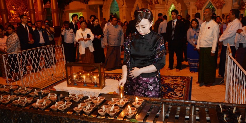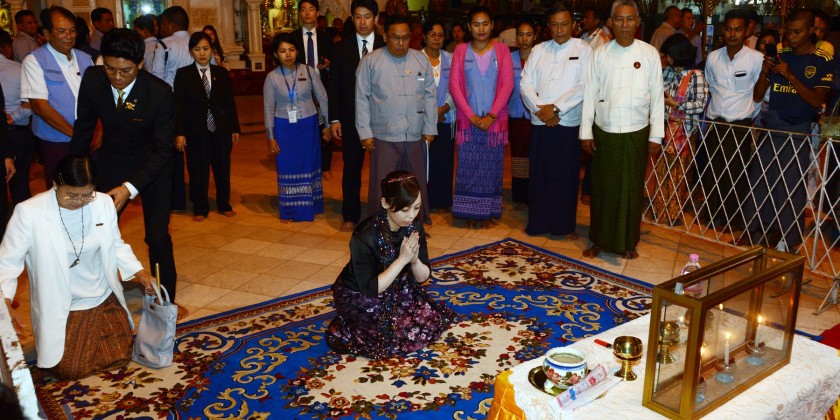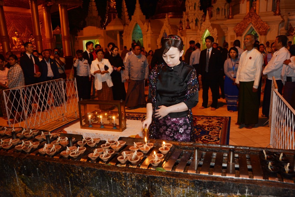 In the evening, Princess Yuko Mikasa and party paid homage to Shwedagon Pagoda. Princess Yuko Mikasa also offered flowers, water, lights and incense to the pagoda and visited around there.