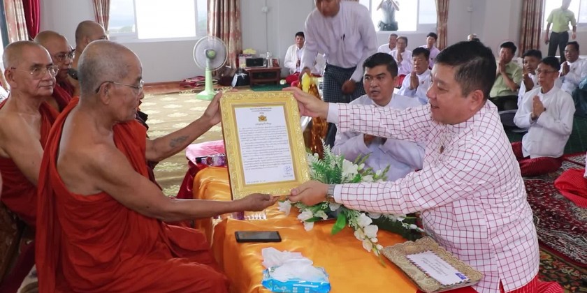 The Mon State Chief minister and party attended a ceremony of offering certificate of honor to the Mon State Ramana Dhammacariya association by the Ministry of Religious Affairs and Culture was held at Sasana 2500 monastery in Mawlamyaing Township in the morning on 13th May. After offering the certificate of honor to the to the Mon State Ramana Dhammacariya association by the Ministry of Religious Affairs and Culture, offered the offertories and shared the merits gained.