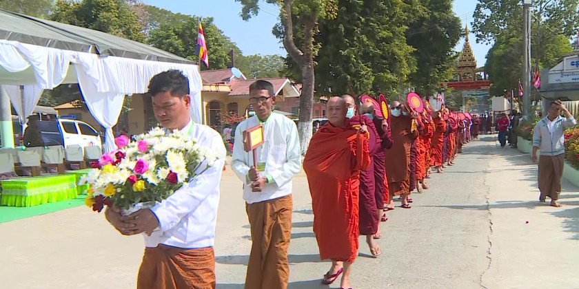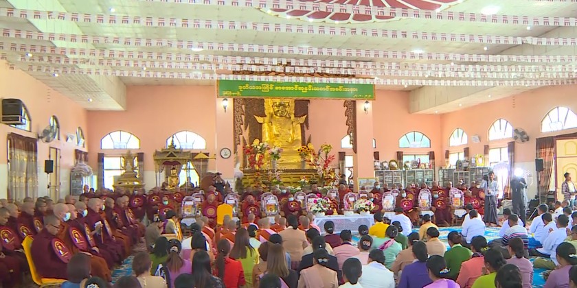 At the ceremony, the congregation observed five precepts from the Sayadaw, state minister for social affairs supplicated the religious matters and the chief minister, commander and attendees offered the offertories to the members of Sangha.