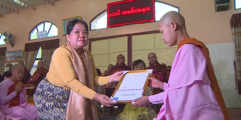 Certificates were conferred to 102 monks and 14 nuns who passed the examinations including Dhammacariya, PaliPathamapyan, Nikal, Abidhamma and Visuddhimagga examinaitons at Kachin State Myitkyina examination center during 2022 and donated offertories.