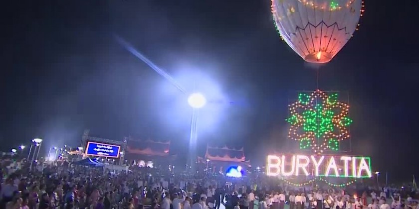 While preparations were being made for releasing hot air balloons, the ethnic cultural troupes performed with songs and dances. Then, the Prime Minister and the visiting Russian delegation took a tour of Stone Inscription Cetis.